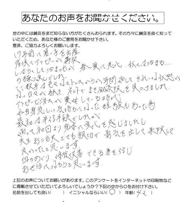 HOME > 【アトピーお声とビフォ―アフター】 > 産後のアトピーが悪化した方のお声
